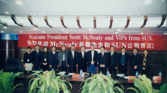 3月16日深夜,Sun公司董事长、全球总裁兼CEO 司各特.麦克尼利(ScottMcNealy)抵达北京,开始了他备受瞩目的第三次中国之行。 而在此次安排紧筹的日程里,与best365网页版登录官网高层的会谈是麦克尼利先生第一天的重要内容。 17日上午9:30,麦克尼利先生来到best365网页版登录官网东方广场办公区,与公司高层进行座谈,受到热烈欢迎。
