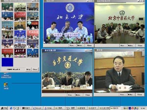 “全国教育应急视频会议系统”是在教育部支持下,为抗击“非典”疫情,依托中国教育和科研计算机网CERNET于4月下旬紧急启动的。该系统在全国各高校的配合下,依托CERNET遍布全国的高速互联网络,利用下一代互联网典型应用技术——组播视频技术而搭建的具有超强交互功能的视频会议系统。此前已经在教育系统进行过多次小规模试用,极大地方便了教育部与各级教育机构及各大学之间的信息交流与沟通,为教育系统阻击非典提供了先进、实用、低廉信息交流平台。在整个会议期间,图像清晰稳定,操作简便,获得了与会校长及领导的肯定。