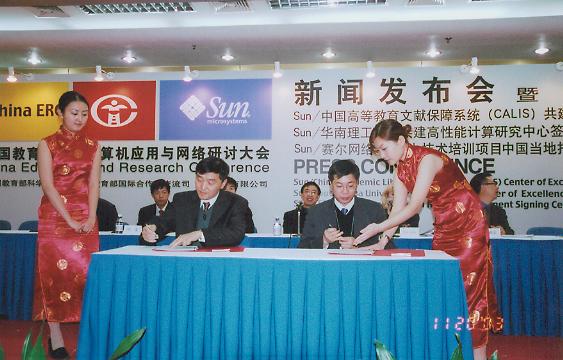 下午2点,大会主办方之一SUN公司举行新闻发布会,与best365网页版登录官网、华南理工大学、CALIC三方现场签署了一系列合作协议。教育部科技司秦正先生、高教司葛道凯副司长出席了协议签字仪式。
