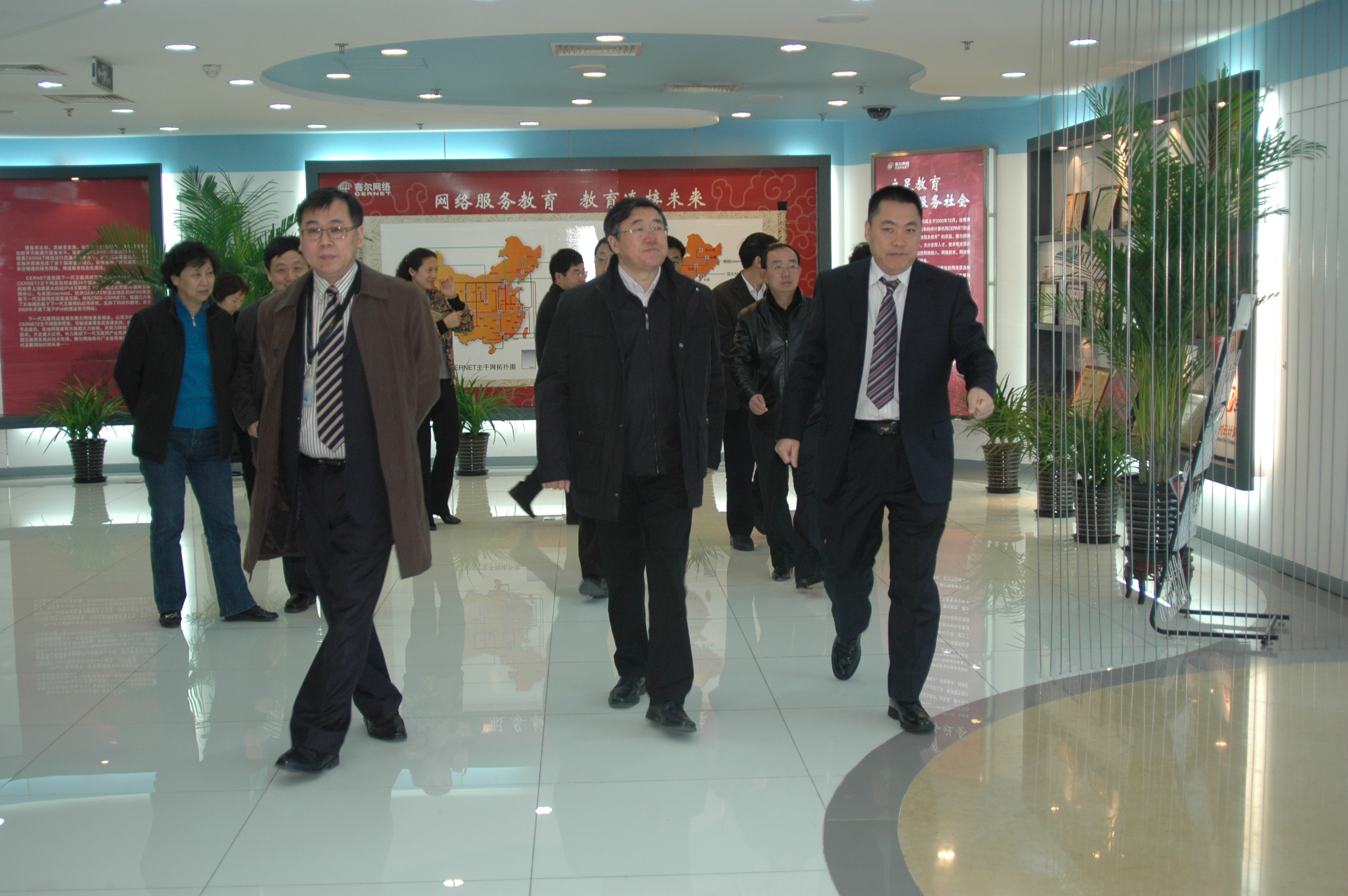 区领导在清华大学信息网络工程研究中心的中国下一代互联网示范工程网络运行中心演示厅听取了公司总经理吴建平关于下一代互联网建设和研究成果介绍。隋区长就科研成果产业化的问题进行了详细询问。随后区领导一行来到了赛尔大厦进行视察,并听取了公司副总经理武文忠、总经理助理王岩就best365网页版登录官网基本经营情况以及“下一代互联网及重大应用技术创新园”筹建工作的汇报。