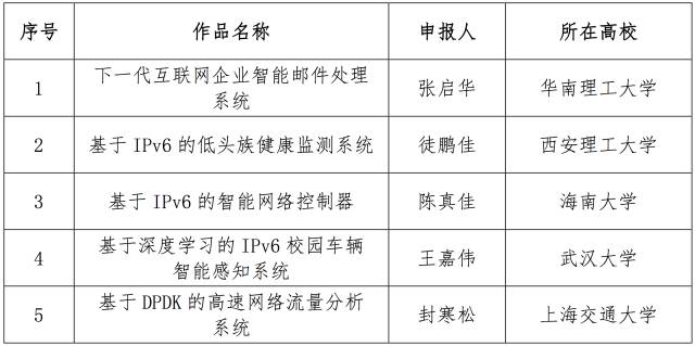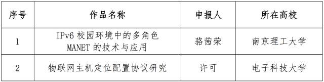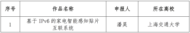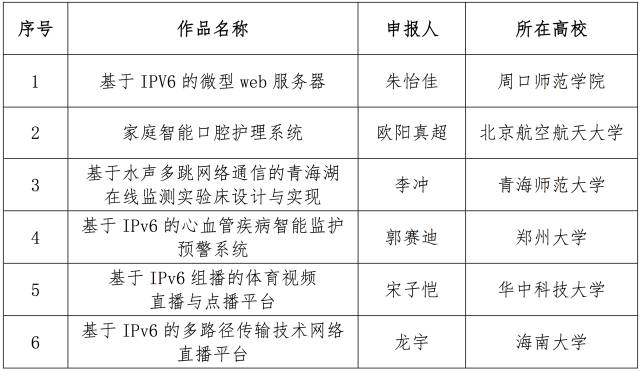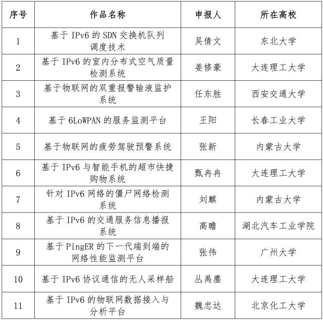 12月10日,面向全国大学生的下一代互联网技术创新大赛在清华大学落幕,来自南京理工大学的IPv6校园环境中的多角色MANET的技术与应用、电子科技大学的物联网主机定位配置协议研究、和上海交通大学的基于IPv6的家电智能感知贴片互联系统从230多个作品中脱颖而出,获得大赛一等奖。