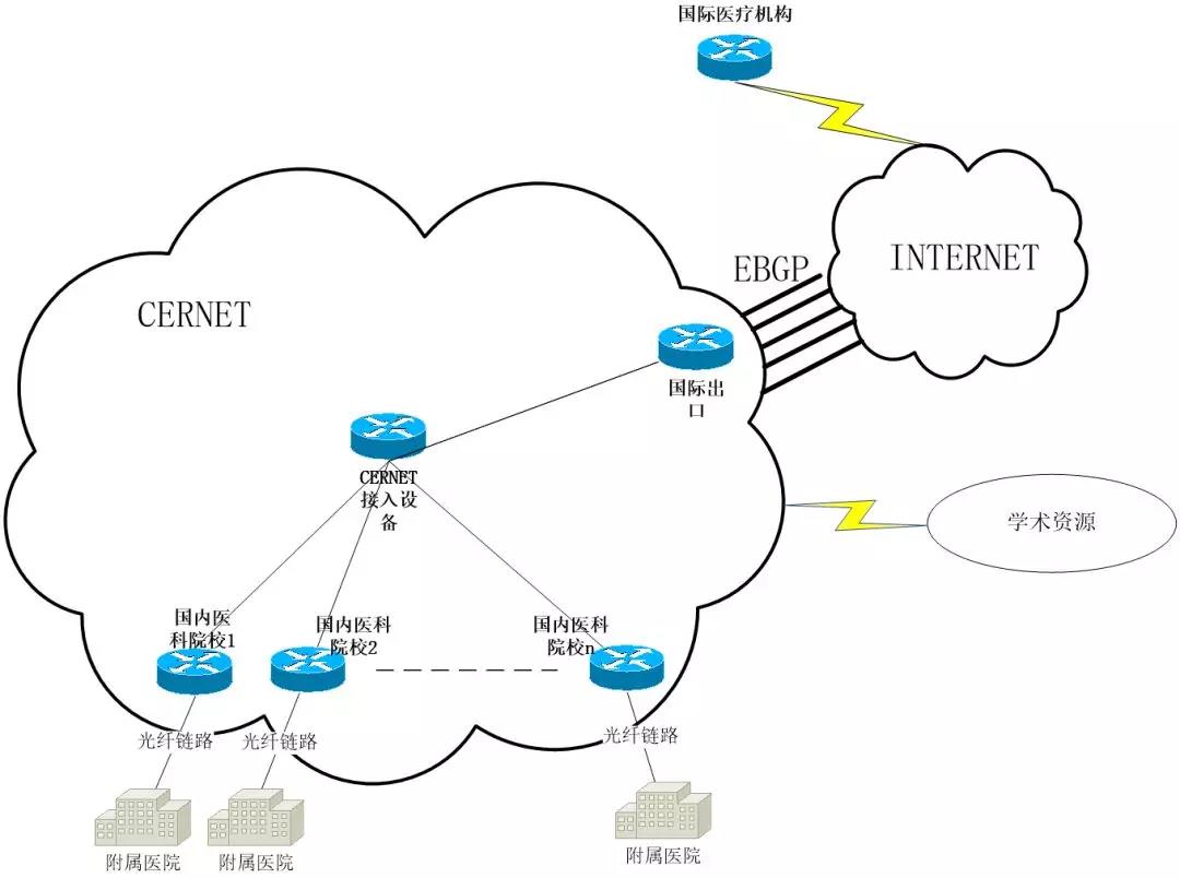 图1:国内外医疗院校网络拓扑图