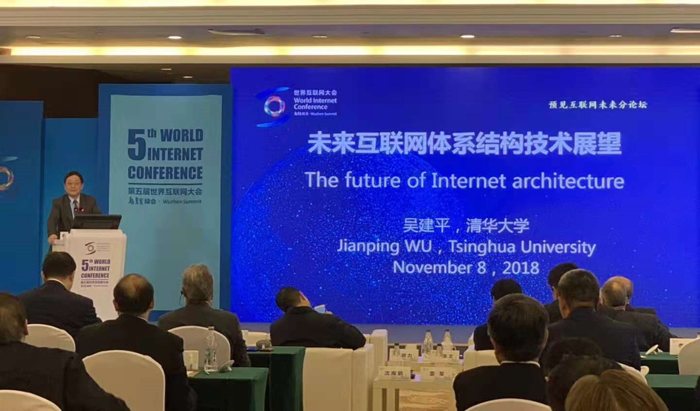 图5:吴建平院士在今年互联网大会的"预见互联网未来——世界互联网领先科技成果发布活动专家与企业家论坛"上发表主旨演讲