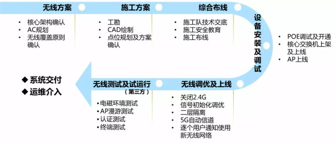 为此,best365网页版登录官网成立了项目实施领导小组,建立了完善的项目组织架构,坚持以科学管理为指导,制定最优的项目流程,积极与用户、厂商协调沟通,细化项目实施步骤/周期,反复确认无线覆盖原则,为项目的顺利完成奠定坚实基础。一是成立专家顾问组,保障项目技术方案和实施方案的科学合理性,确保项目的质量;二是注重与用户、厂商间的沟通,及时解决建设过程中遇到的各类问题,保证用户利益;三是有效协调公司内部各方面资源,确保项目资金、设备采购等商务环节及时到位;四是分组实施,责任到位;五是注意项目设计文件、技术文件、日常管理文件、用户手册的整理和归档。