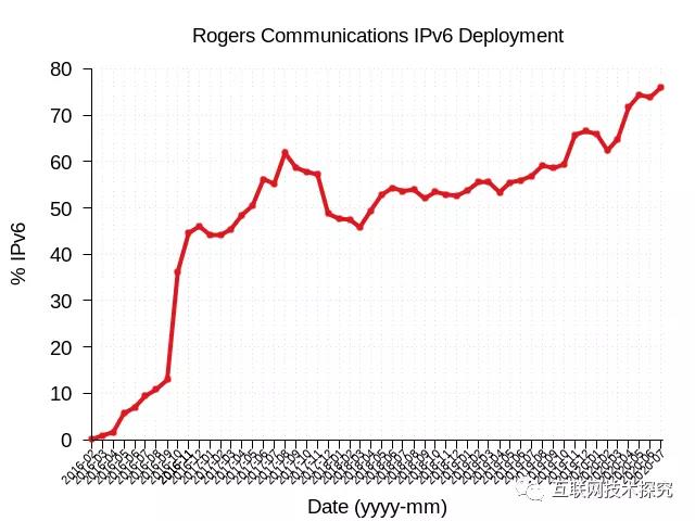 图11 Rogers Communication IPv6部署曲线图 |